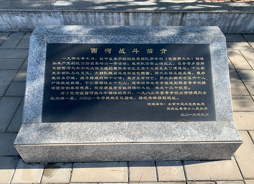 摘要:西河烈士墓位于香营乡山底下村。1947年7月,驻守在永宁的国民党部队在西河地区与当时华北解放军五旅十三团发生了遭遇战,解放军牺牲37人。1983年,为了纪念在西河战斗中牺牲的英烈,修建了烈士纪念碑,象征着烈士的精神永存。
