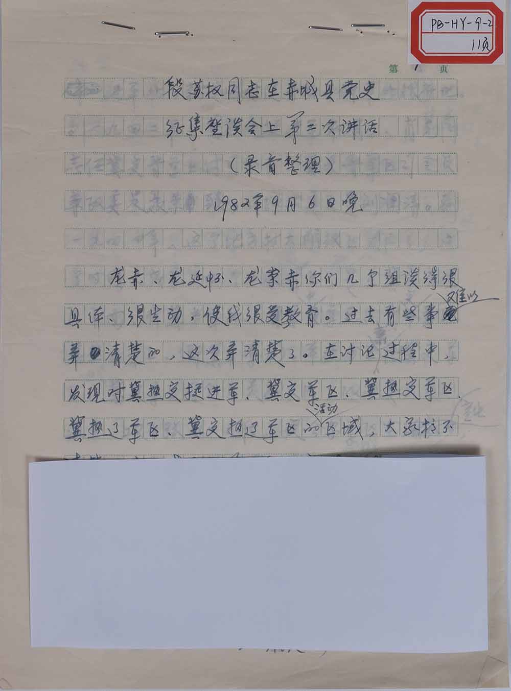 史料-段苏权同志在赤城县党史征集座谈会上第二次讲话